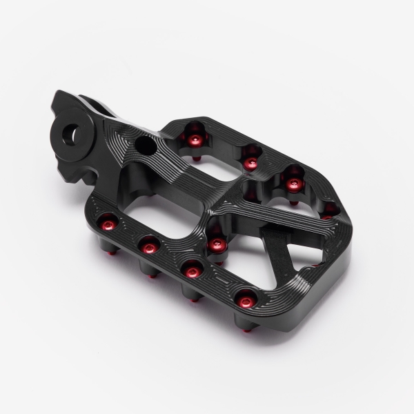 Full-E Charged Black Foot Pegs with 7075 Red Anodized Pins